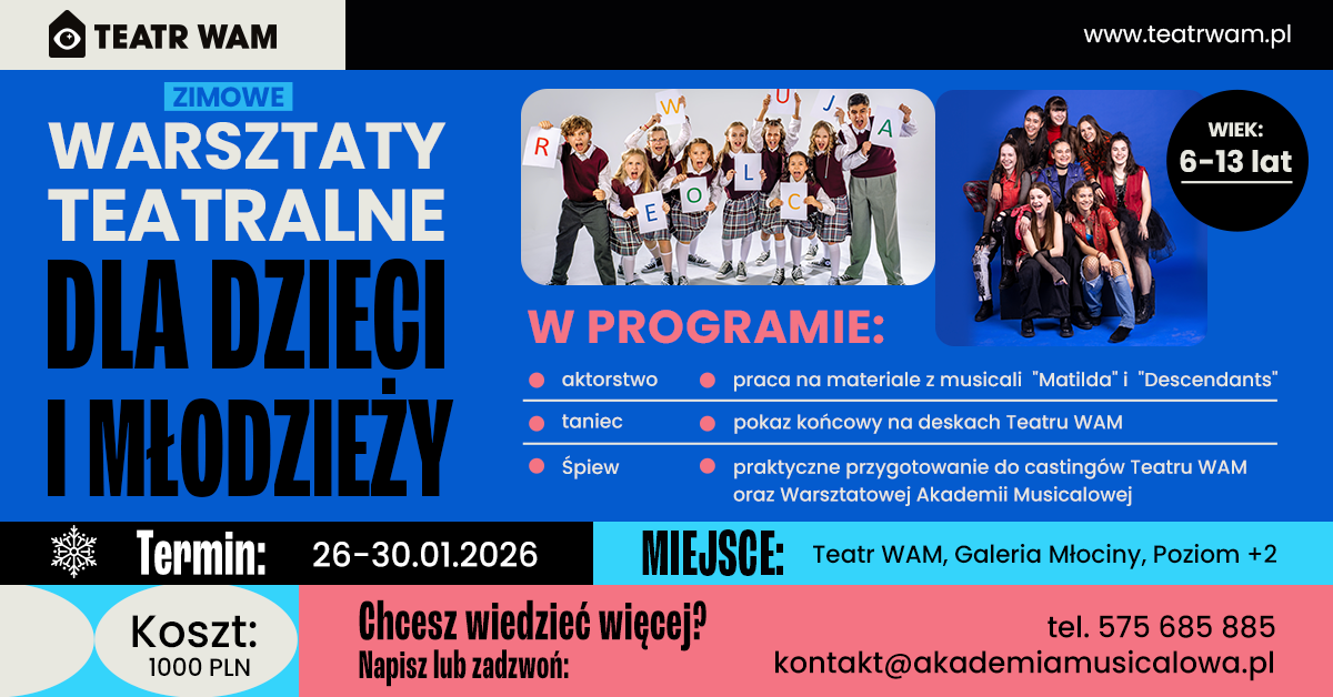 Zapraszamy dzieci i młodzież w wieku 6–13 lat na wyjątkową edycję zimowych warsztatów teatralnych!